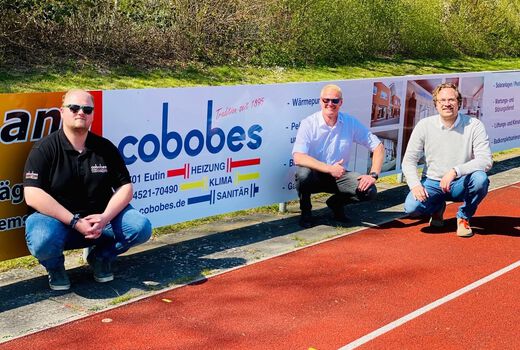 Hier noch der offizielle Post zur Übergabe der Bandenwerbung auf dem Rasenplatz des Ernst-Ruediger Sportzentrums (fand vor Corona Pandemie statt, daher keine 1,5 m Mindestabstand).