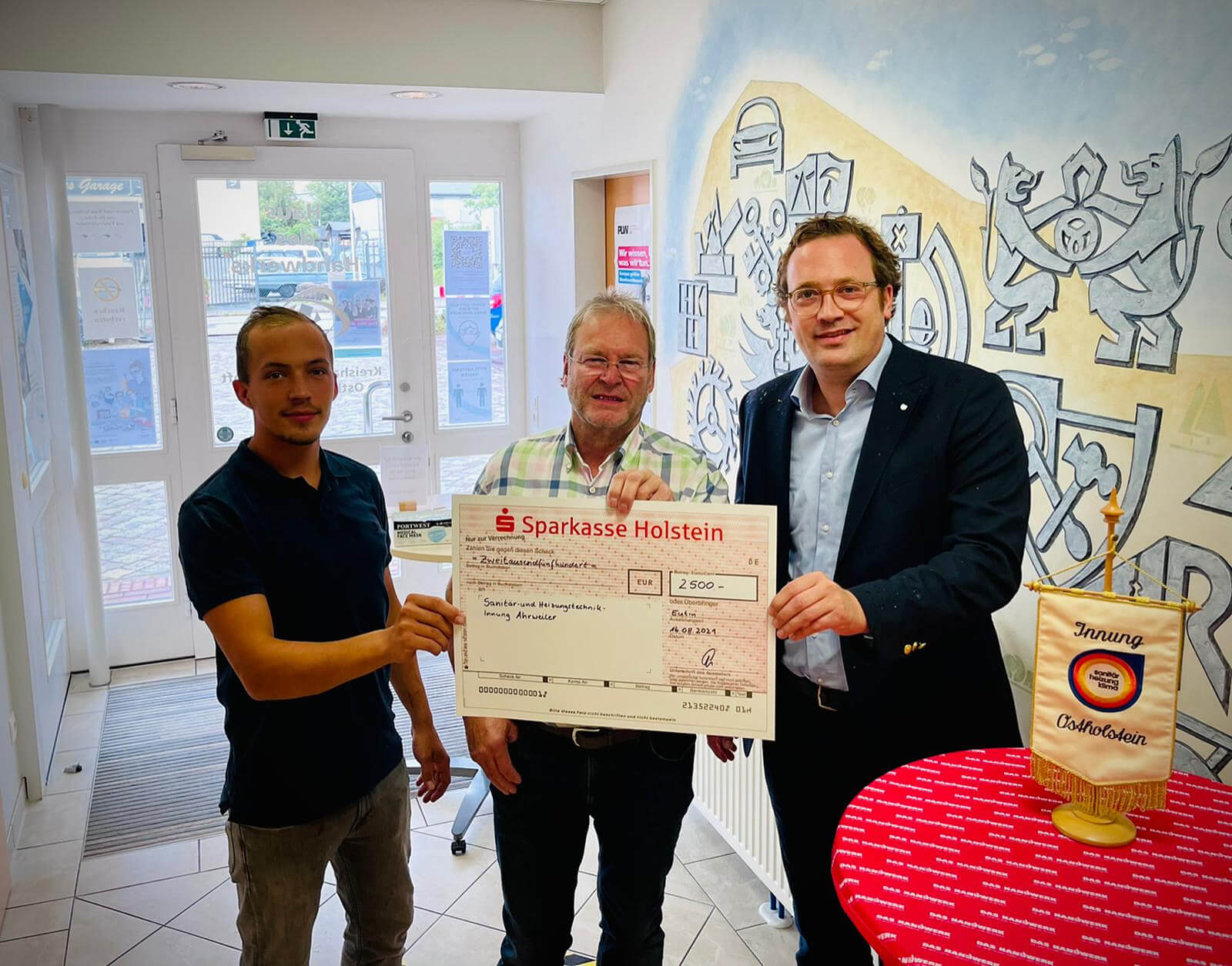Die Innung Sanitär-, Heizung-, Klima- und Klempnertechnik Ostholstein spendet 2500 Euro an die Sanitär- und Heizungtechnik Innung in Ahrweiler.