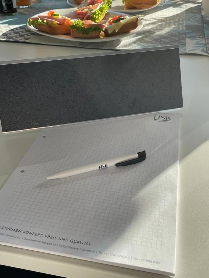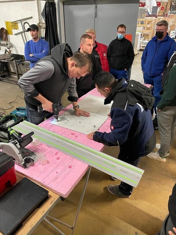 Vor gut zwei Wochen fand bei Cobobes eine HSK Duschkabinenbau Schulung (unter 2G plus) statt, es wurden das Thema RenoDeco (fugenlose Designplatten für den Nassbereich in der Dusche) vermittelt, zunächst in einem Theorieteil (Verarbeitung des Materials, Abdichtung, Pflegehinweise) und dann in einem Praxisteil bestehend aus: