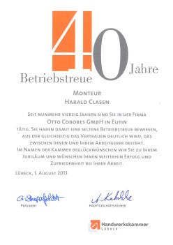 2 x 40 jähriges und 1 x 25 jähriges Jubiläum bei der Firma Otto Cobobes GmbH in Eutin