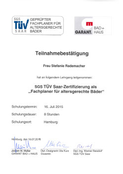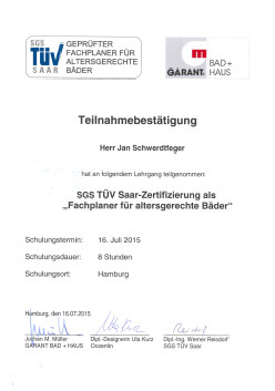 TÜV-Zertifikat für Eutiner Bäderbauer: Fortbildung zum Fachplaner für altersgerechte Bäder