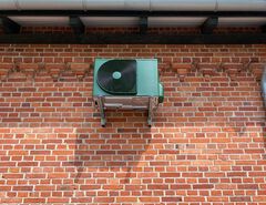 Auf Kundenwunsch können wir das Außengerät der Klimaanlage für den Serverraum auch in TANNENGRÜN passend zu den Stalltoren lackieren.