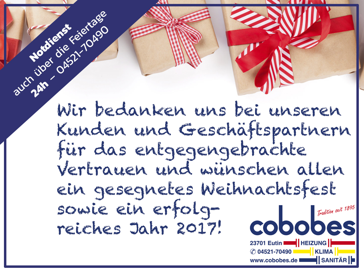 Unser Büro und die Fachausstellung ist über die Feiertage zu den bekannten Öffnungszeiten durchgehend besetzt.Unser Not- und Störungsdienst ist durchgehend 24 h unter 04521-70490 erreichbar.