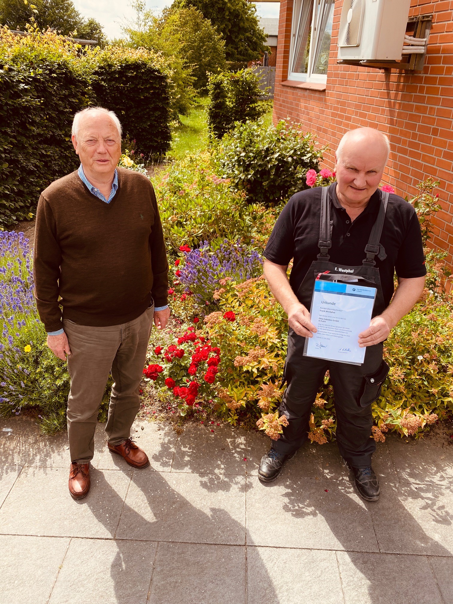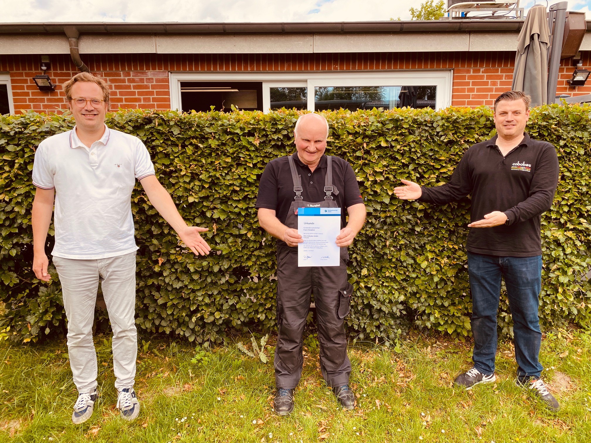 Als Dankeschön wurde Herrn Westphal neben der Urkunde für langjährige Betriebstreue eine Einmalzahlung vor der Firma Cobobes übergeben.