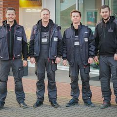 Wir haben uns von dem traditionellen "Klempnerblau" gelöst und auf moderne und funktionale anthrazitfarbende Arbeitsklamotten der Firma Engel gewechselt.