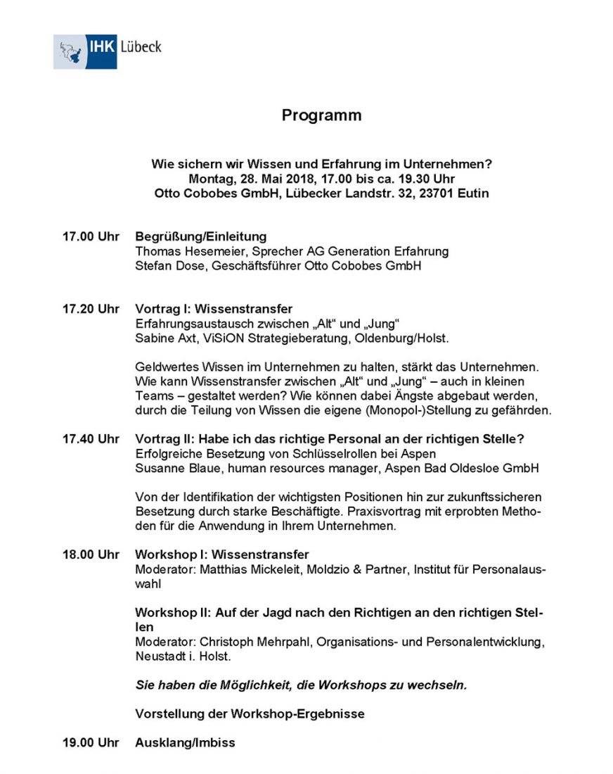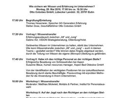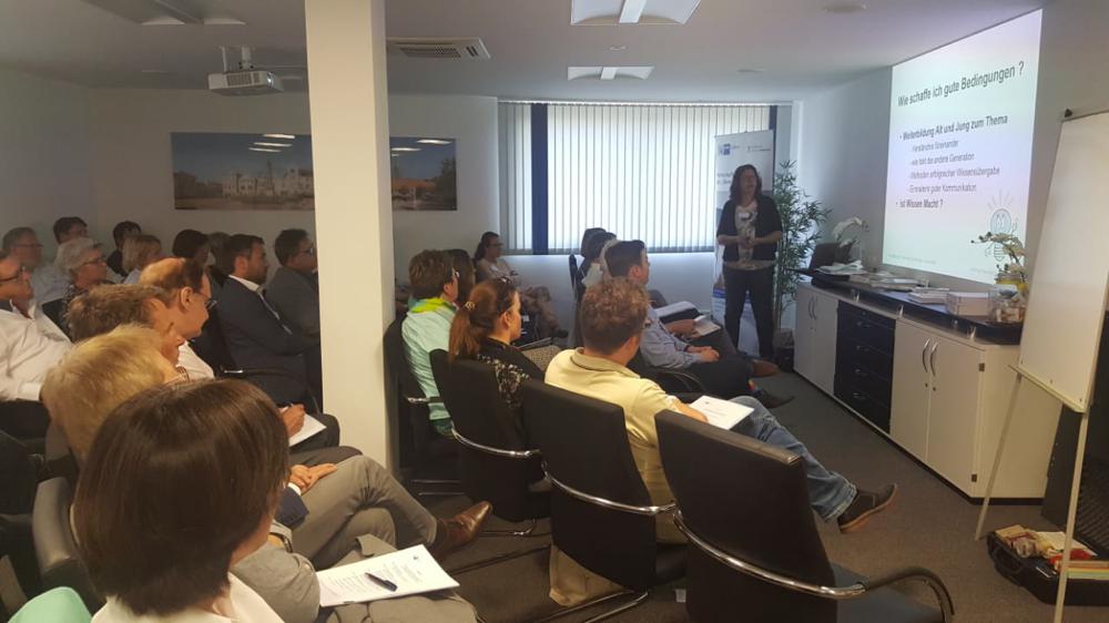 Ende Mai fand bei uns ein interessanter Workshop zum Thema „Wissenstransfer im Unternehmen“ statt. Spezialisten aus den Bereichen Personal und Strategieberatung hielten interessante Fachvorträge mit Best Practice Beispielen, wie Wissen im eigenen Unternehmen verbleibt und zwischen Alt und Jung ausgetauscht wird. Anschließend hatten die Teilnehmer bei zwei Workshops die Möglichkeit, Erfahrungen auszutauschen und Wissen zu vertiefen.