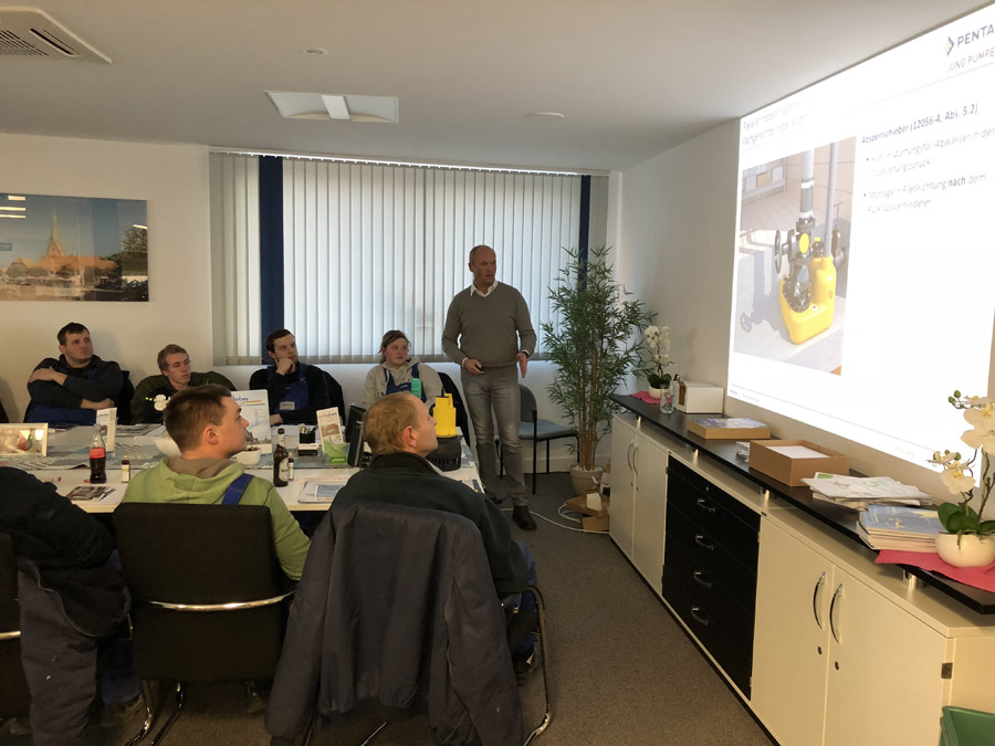 Vor einigen Tagen fand bei uns durch unseren Partner Jung-Pumpen eine Schulung statt. Inhalte waren unter anderem Gebäudeentwässerung, Abwassertechnik, Frischwasserpumpen, bodengleiche Duschen, Smart Home und vieles mehr. Jung-Pumpen ist seit mehr als 90 Jahren auf die Herstellung hochwertiger Pumpen, Hebeanlagen und Pumpstationen für die Bereiche Haustechnik, Abwassertechnik und Druckentwässerung spezialisiert. Dies ist nur einer der Gründe, warum wir unserem Partner vertrauen und uns auch durch ihn regelmäßig auf den neuesten Stand der Technik bringen lassen.