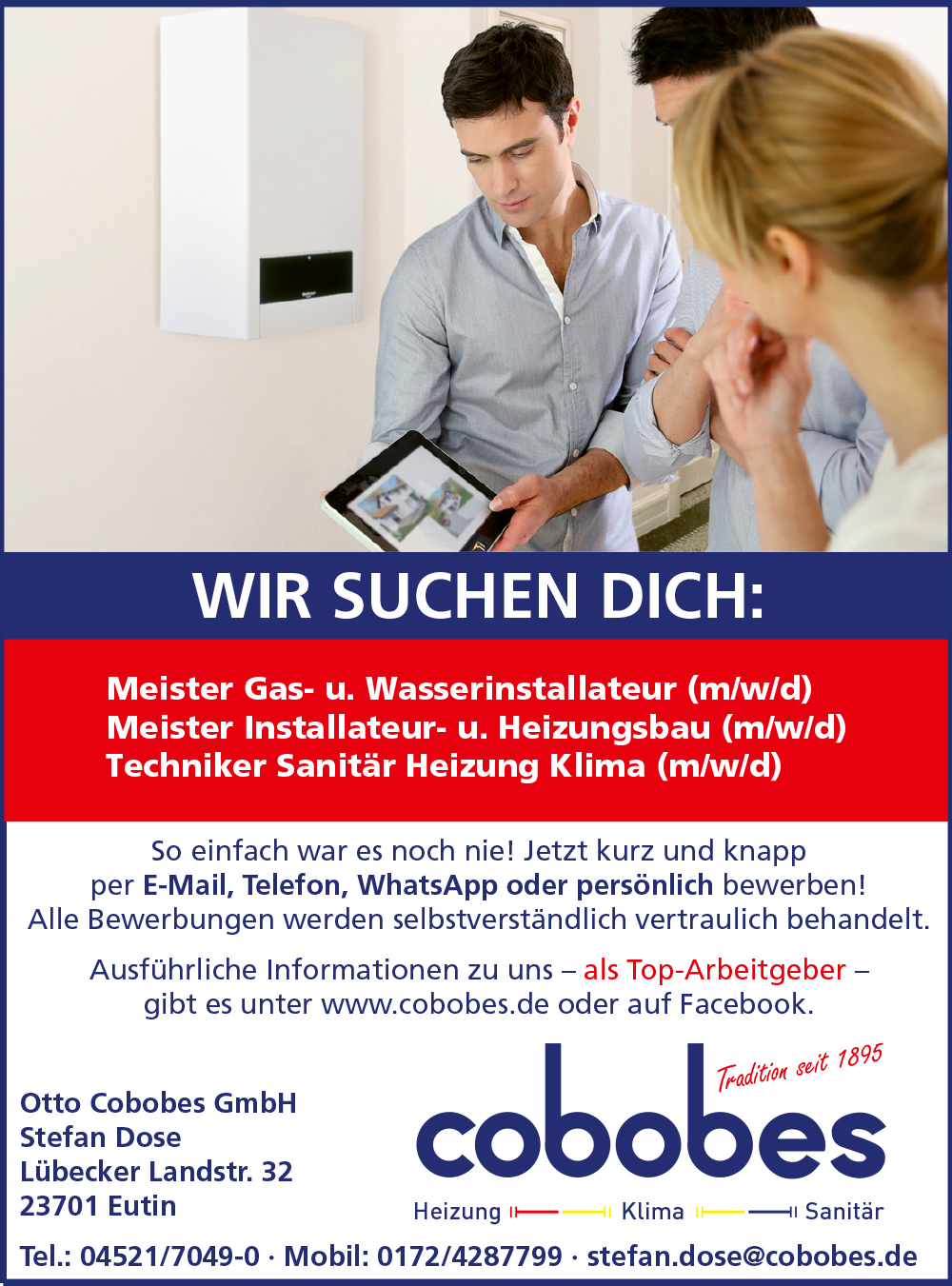 Bitte schicke uns eine ausführliche Bewerbung, die wir vertraulich behandeln, an: stefan.dose@cobobes.de