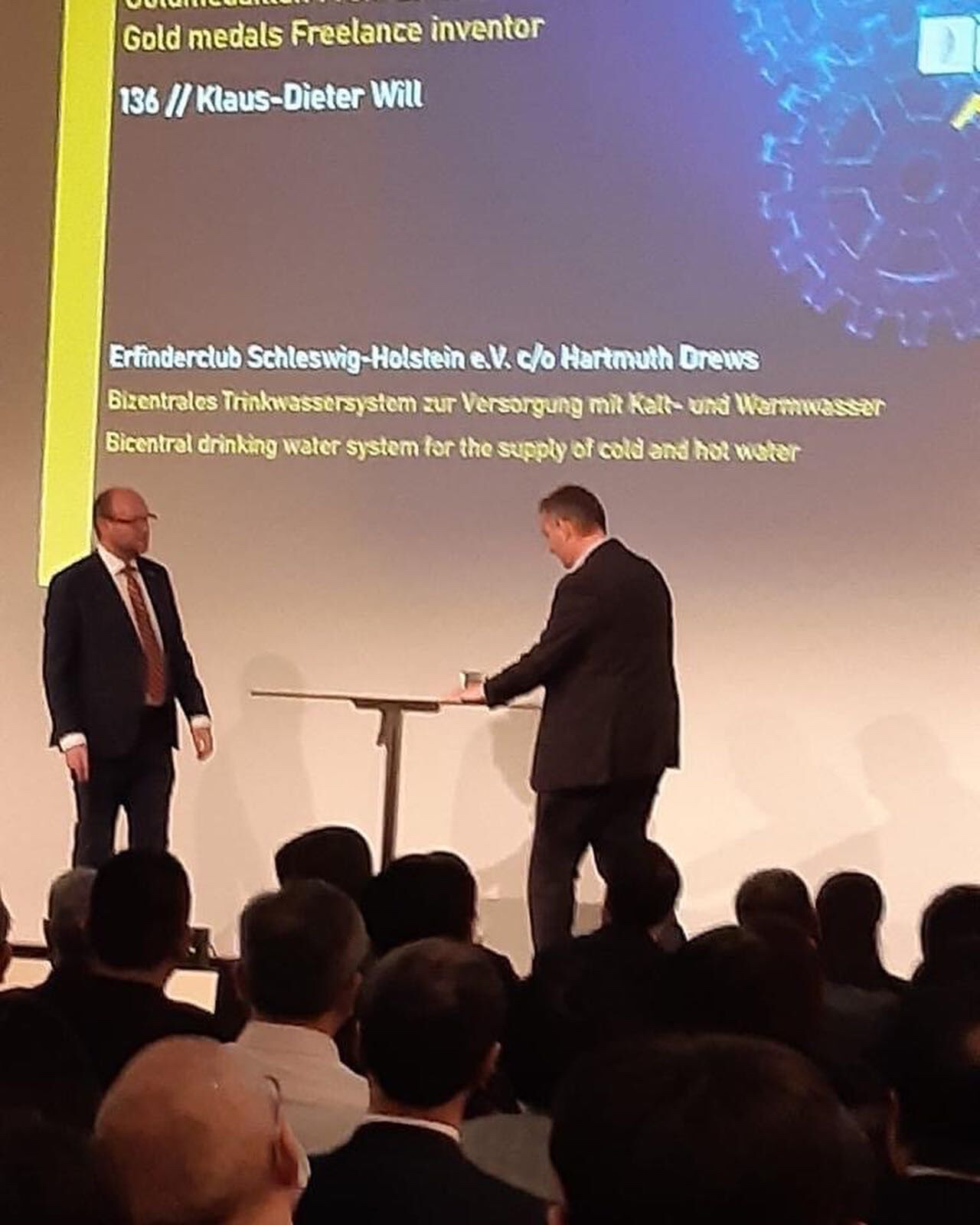 Unser Meister Klaus-Dieter Will aus Sagau wurde bei der iENA 2022 (Internationale Fachmesse Ideen Erfindungen Neuheiten) in Nürnberg mit einer Gold- und einer Silbermedaille ausgezeichnet - wir freuen uns, dass seine beiden Erfindungen "Bizentrales Trinkwassersystem" und "Prüfeinrichtung für Membranausdehnungsgefäss" so positiv von der Expertenjury angenommen wurden. Weiter so.