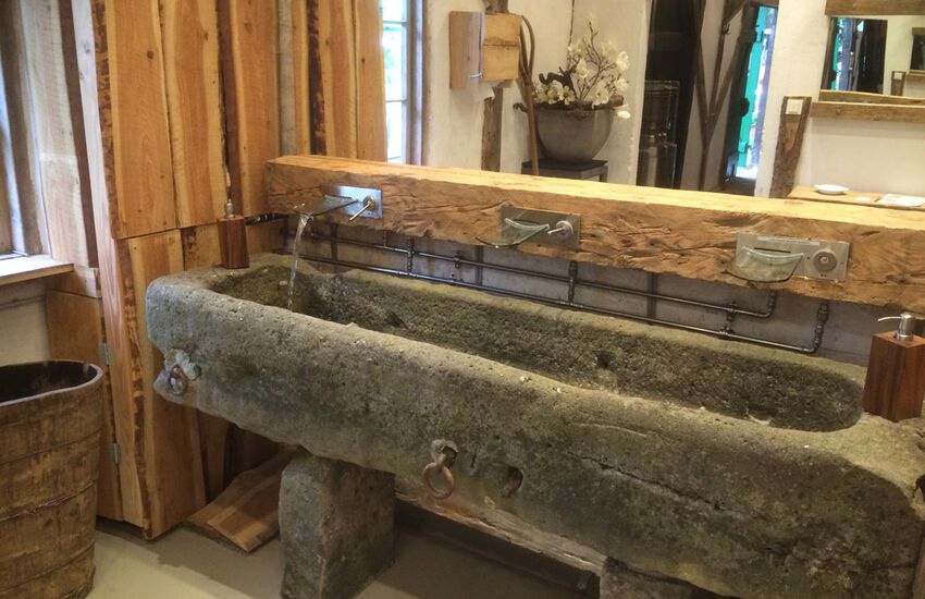 Waschtisch-Anlagen und Kunden-WCs im rustikalem Ambiente