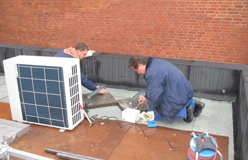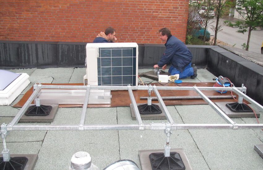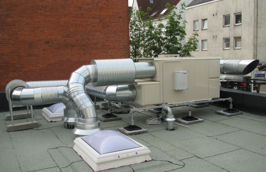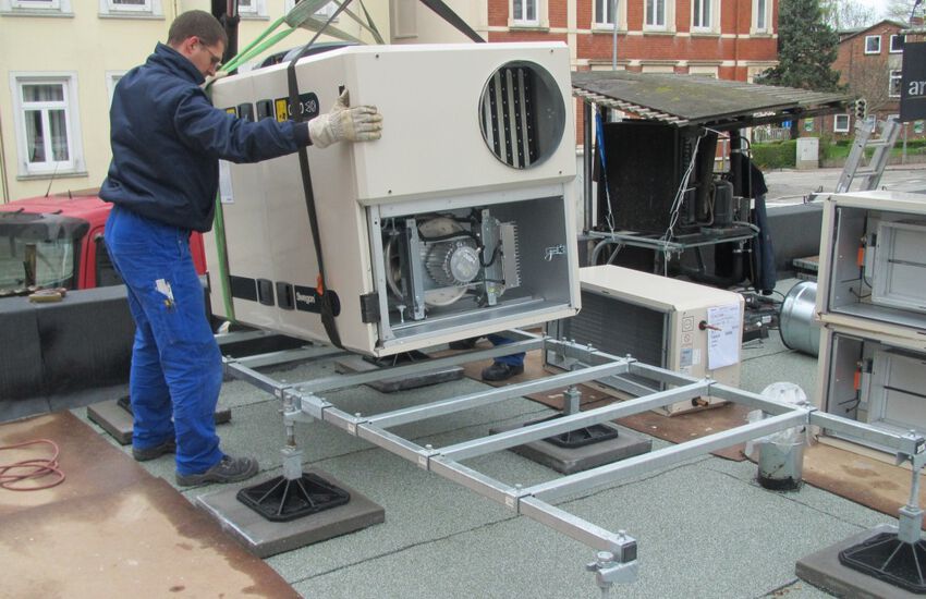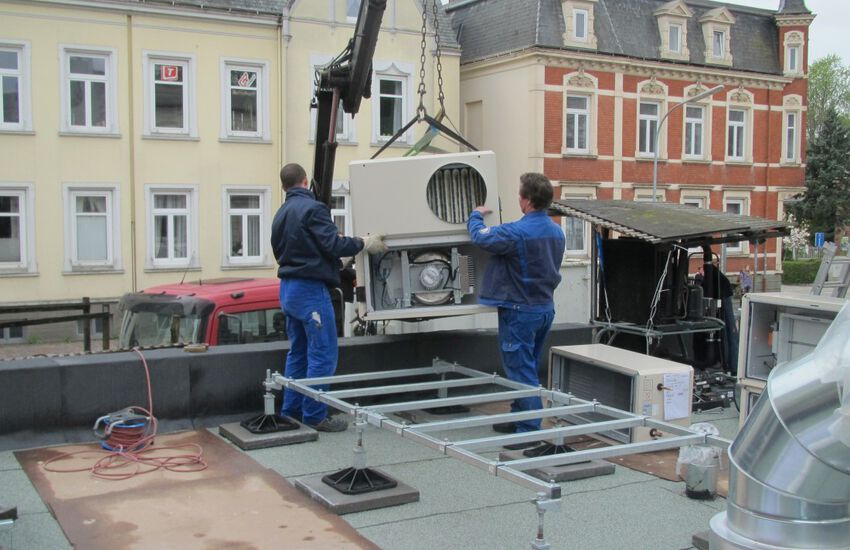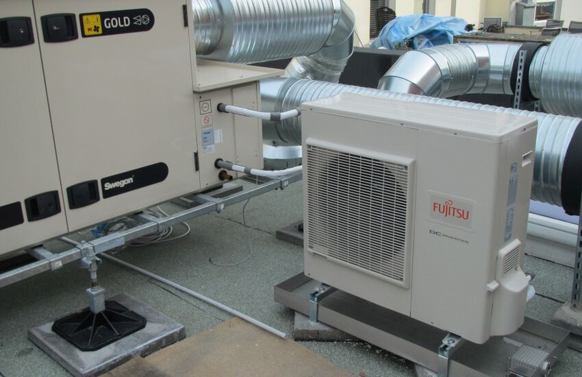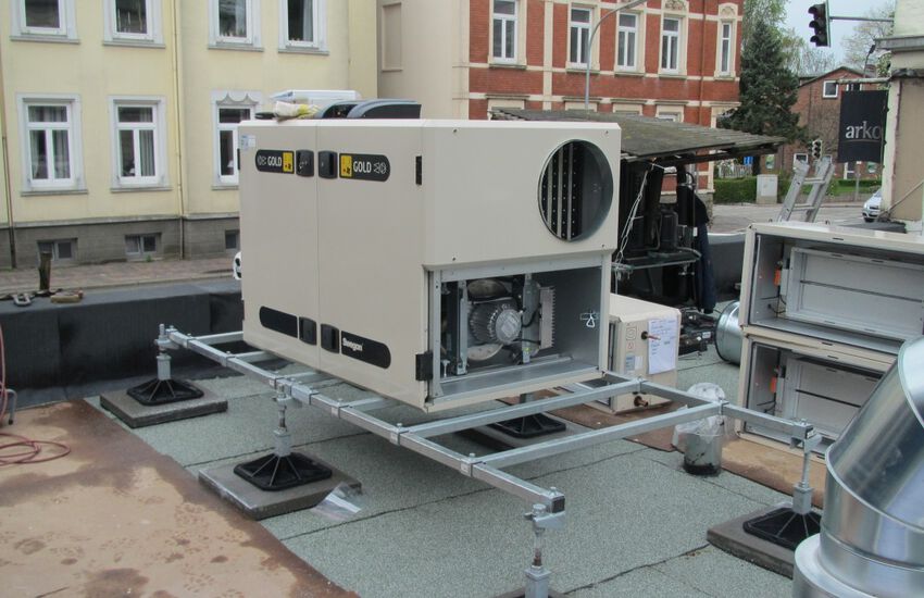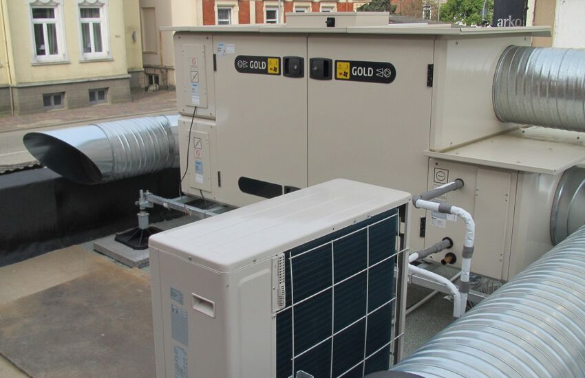 - 3 Stück Multisplitklimaanlagen mit Gesamtkühlleistung von 70 kW angebunden an Kassetten, Kanalgerät mit Textilschlauch, Unterdeckengerät, Wandgeräte und Truhen