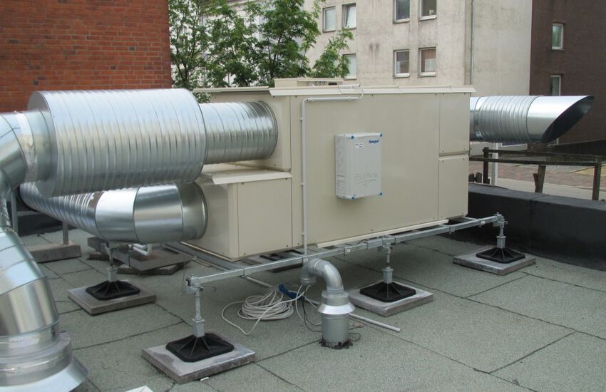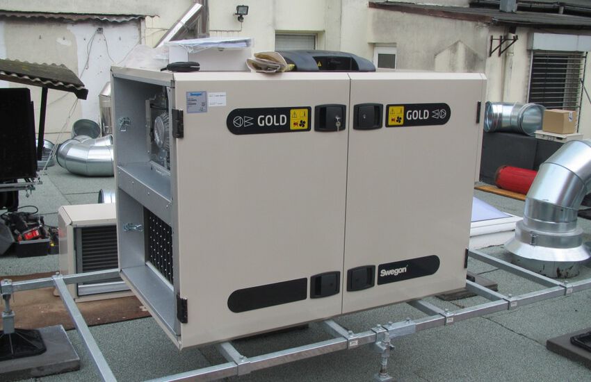 - Lüftungsanlage mit Kreuzstromwärmetauscher mit 2000 m³/h und Zu- und Abluftnetz mit Auslässen