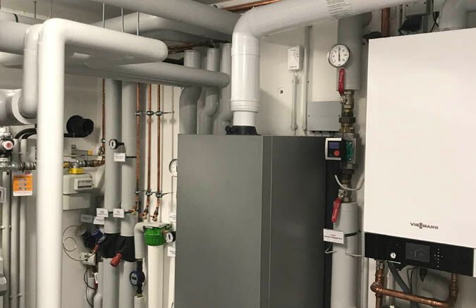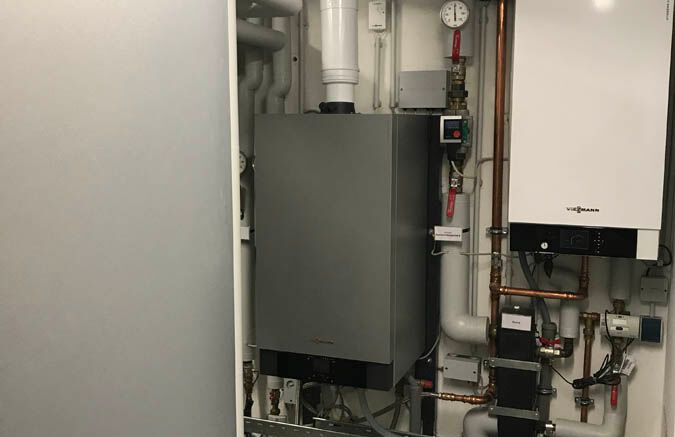 - Einbau eines Gasbrennwertgerätes und eines Stirling Mikro-BHKWs, Fabrikat: Viessmann
