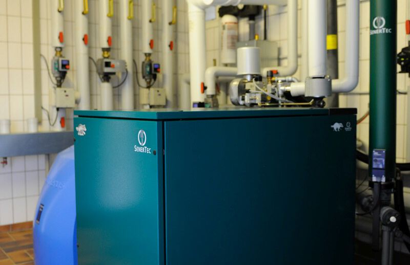 - Gasbetriebenes Blockheizkraftwerk, Leistung: 12,5 kW thermisch mit Pufferspeicher und hydraulische Einbindung des alten und neuen Firmengebäudes
