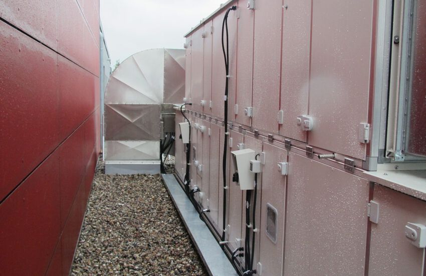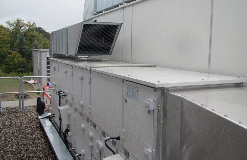 - Einbau von zwei zentralen Lüftungsgeräten mit Wärmerückgewinnung, ca. 6200 und 2000 m³/h