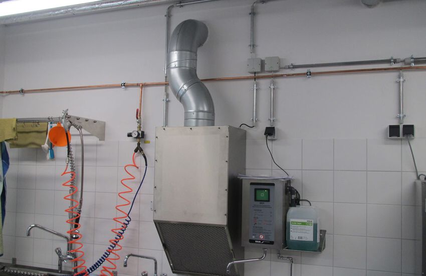 - Ablaufthauben aus Efelstahl zum Abführen von Gasen aus technischen Prozessen
