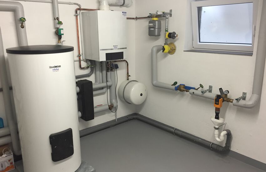 - Wandhängendes Gasbrennwertgerät 35 kW mit nebengestellten Warmwasserbereiter 300 Liter