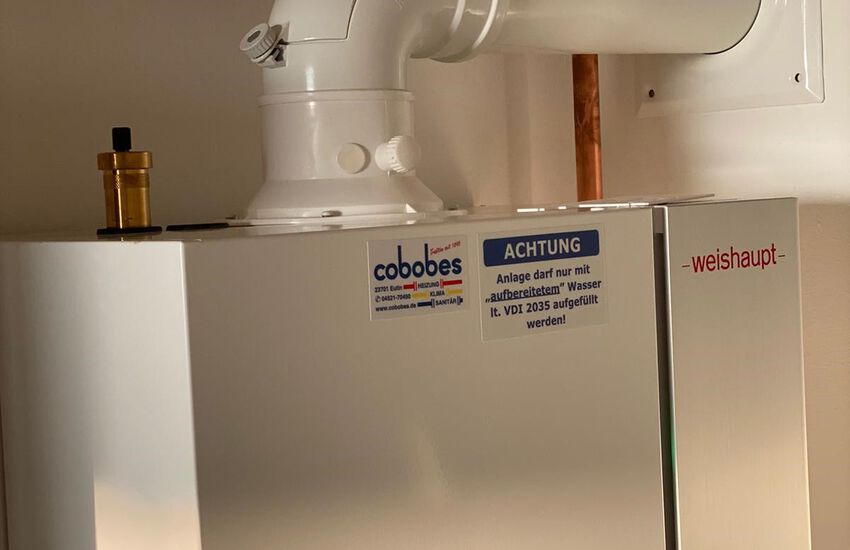 - Einbau einer Gasbrennwerttherme: Weishaupt Kombi-Gerät (WTC-25B) für saisonalen Betrieb