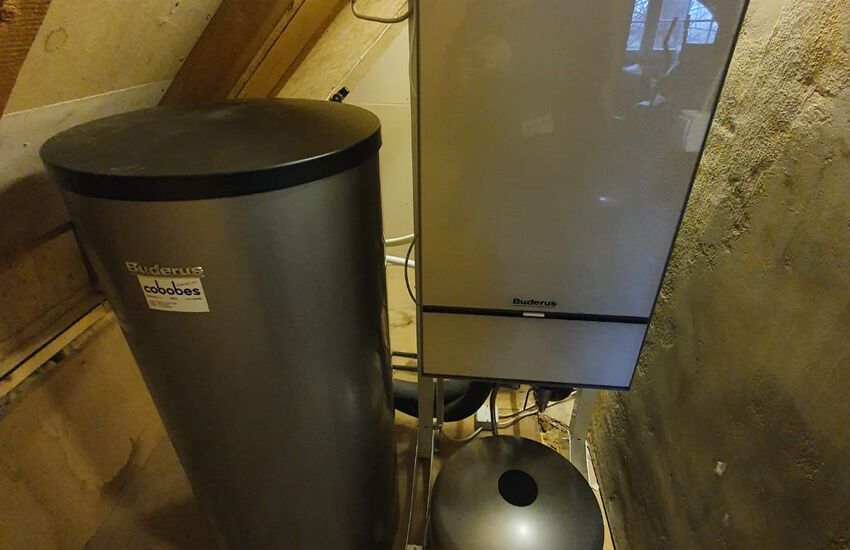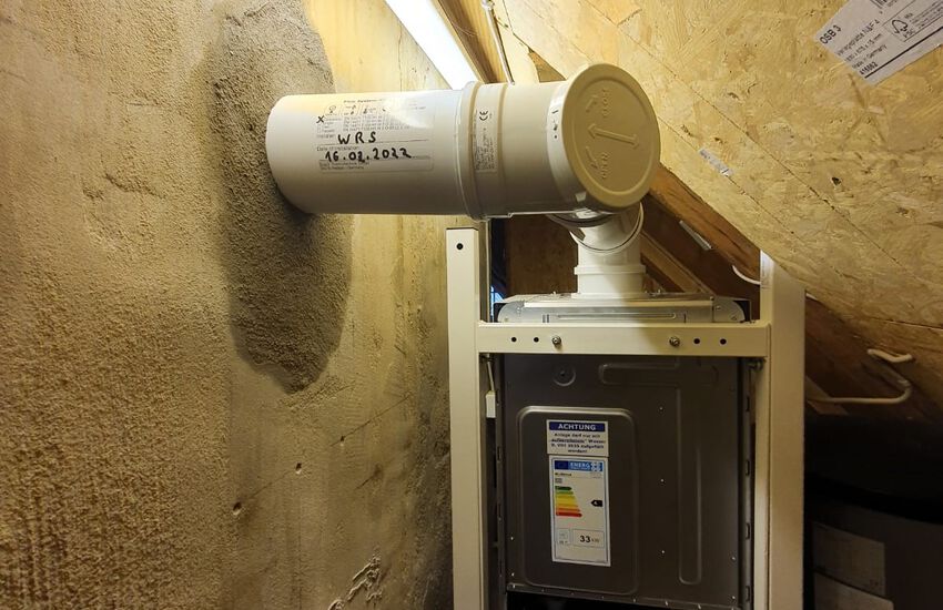 Einbau eines wandhängenden Gasbrennwertkessels mit nebengestellten Warmwasserbereiter