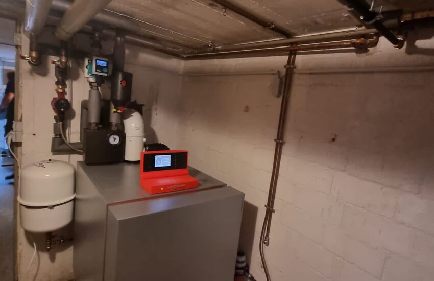 Einbau eines bodenstehenden Ölbrennwerkessels mit nebengestellten Warmwasserbereiter