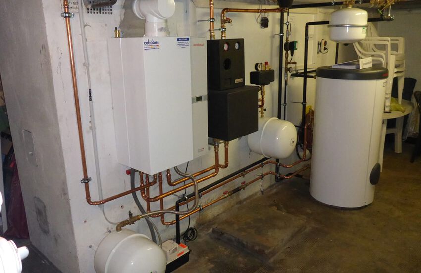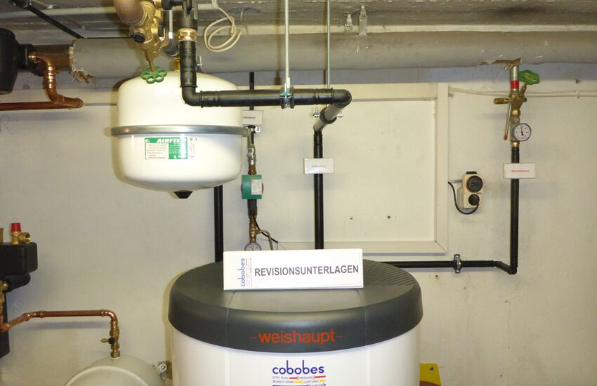 - Einbau eines Gasbrennwertgerätes mit nebengestelltem Warmwasserbereiter, Fabrikat: Weishaupt