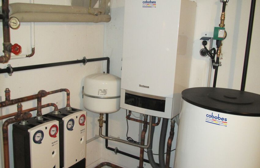 - Buderus Gas-Brennwertgerät, Leistung: 20,0 kW mit nebengestellten Warmwasserbereiter 160 Liter