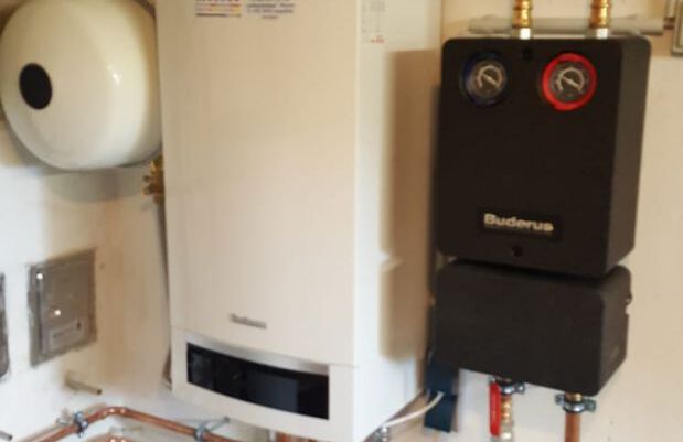 - Einbau eines Gasbrennwertgerätes mit nebengestellter Warmwasserbereitung, Fabrikat: Buderus