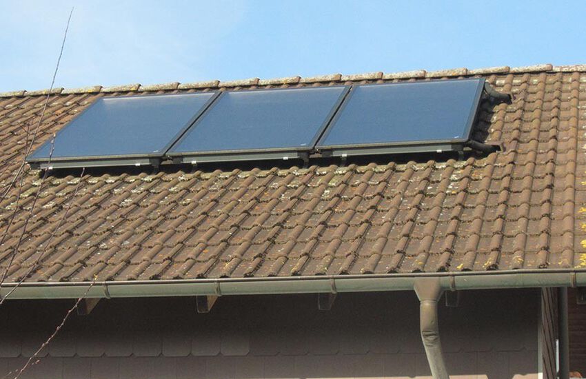 3 Flachkollektoren zur Unterstützung der Warmwasserbereitung mit Solarstation