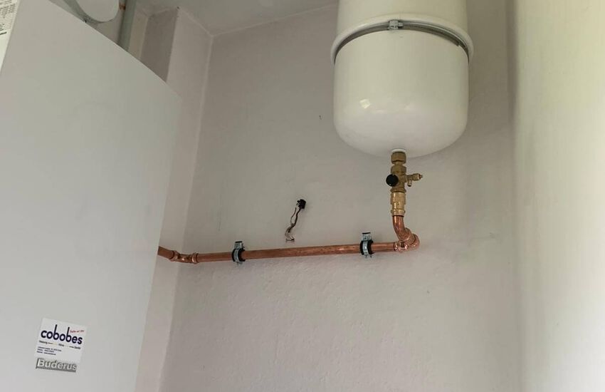 Einbau eines wandhängenden Gasbrennwertgerätes mit nebengestellten Warmwasserbereiter