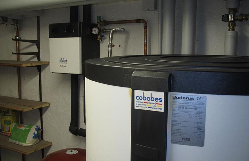 - Buderus Gas-Brennwertgerät, Leistung: 65,0 kW mit nebengestellten bivalenten Solarspeicher 400 Liter