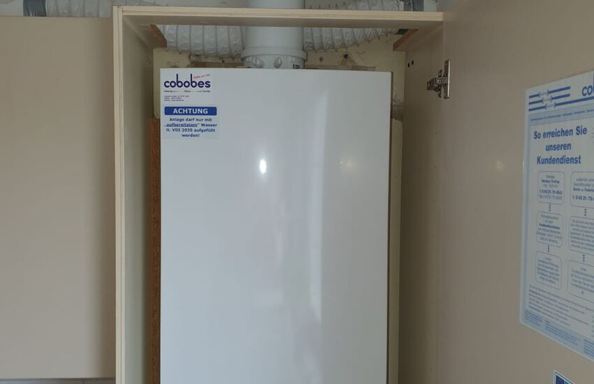 Einbau einer Gasbrennwertanlage mit Warmwasser im Durchlaufprinzip, Fabrikat: Buderus