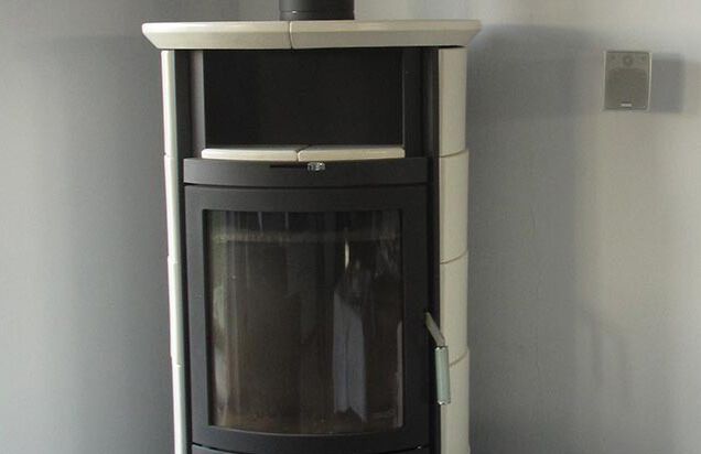Einbau eines Scheitholzkaminofens, Fabrikat Hark, mit Außenschornstein