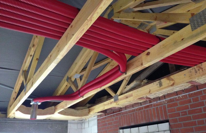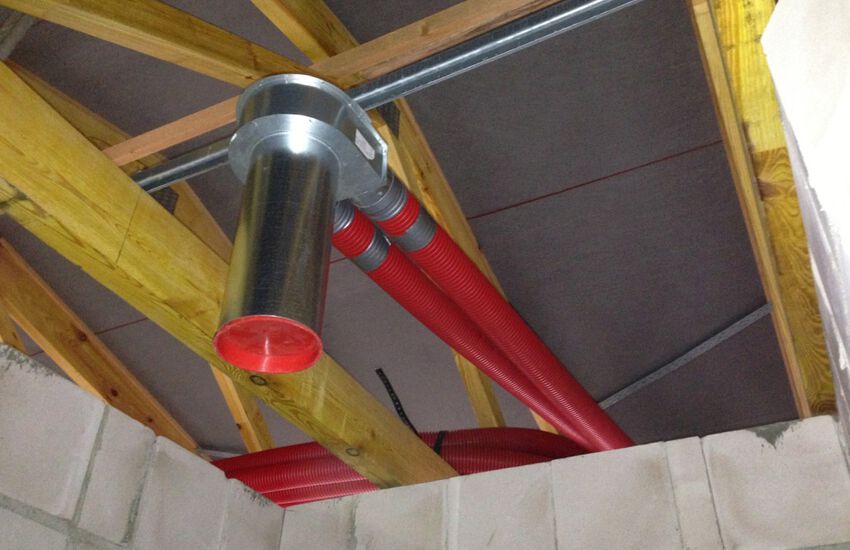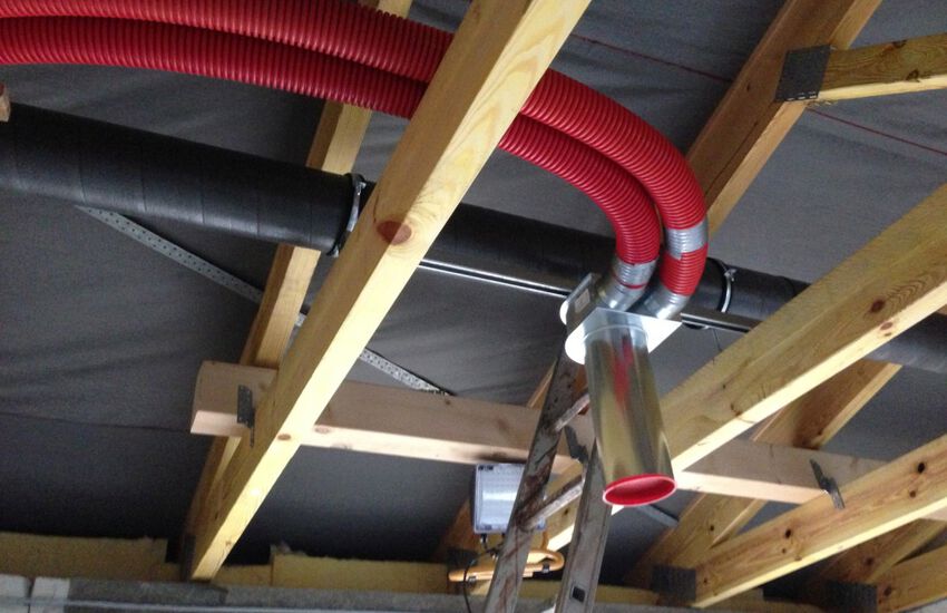 Lüftungsanlage mit Kreuzstromwärmetauscher mit 330 m³/h und Zu- und Abluftnetz mit Auslässen
