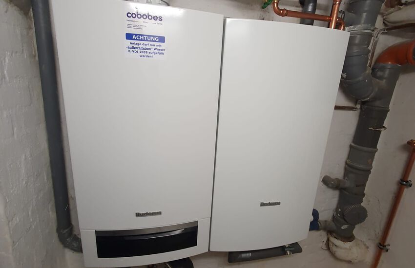 Einbau einer Gasbrennwertanlage mit nebenhängenden Speicher, Fabrikat: Buderus