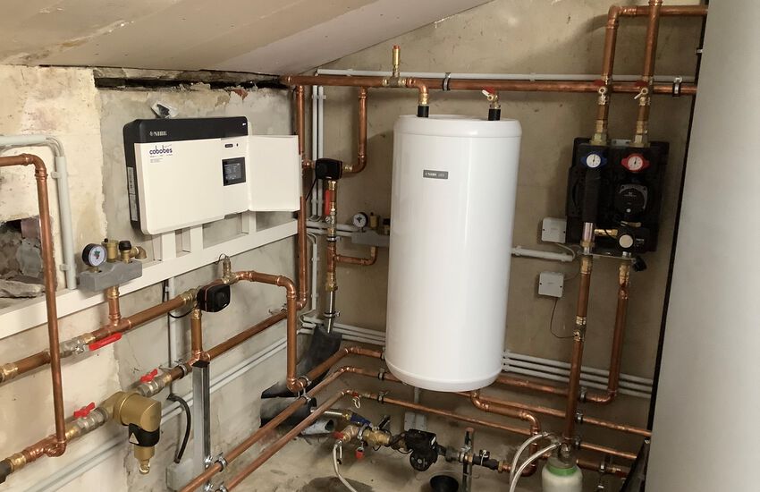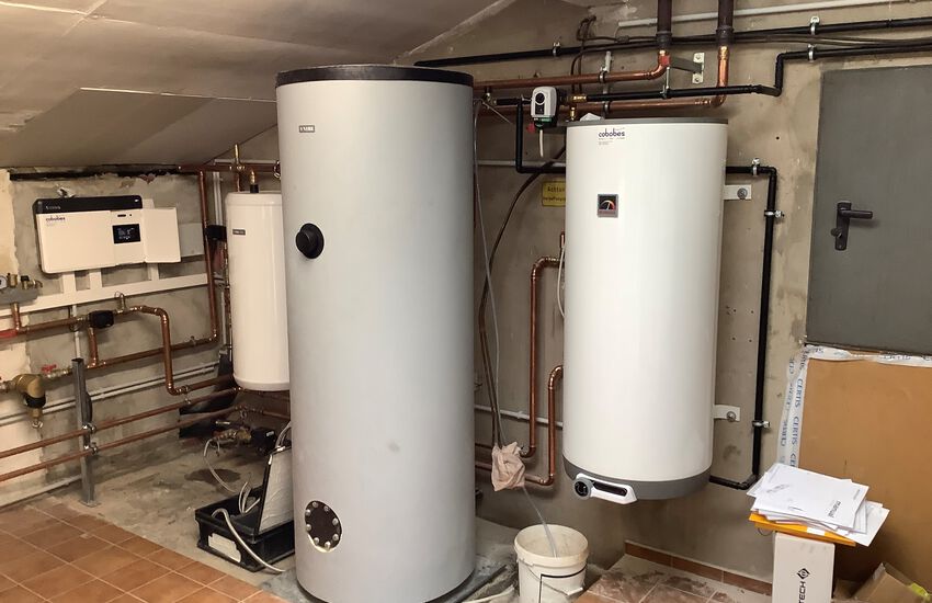 Einbau einer Luft-Wasser-Wärmepumpe mit Brauchwasserspeicher, Fabrikat: NIBE