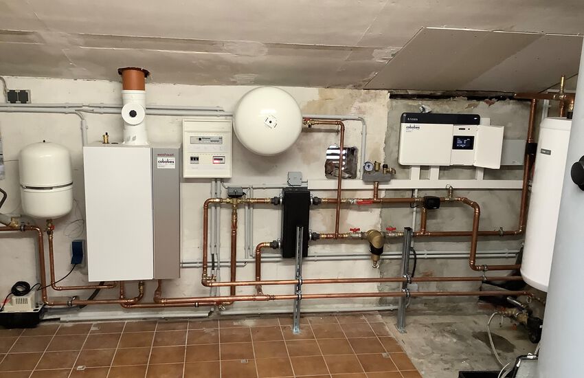 Einbau eines Spitzenlastkessels als Gasbrennwertgerät, Fabrikat: Weishaupt