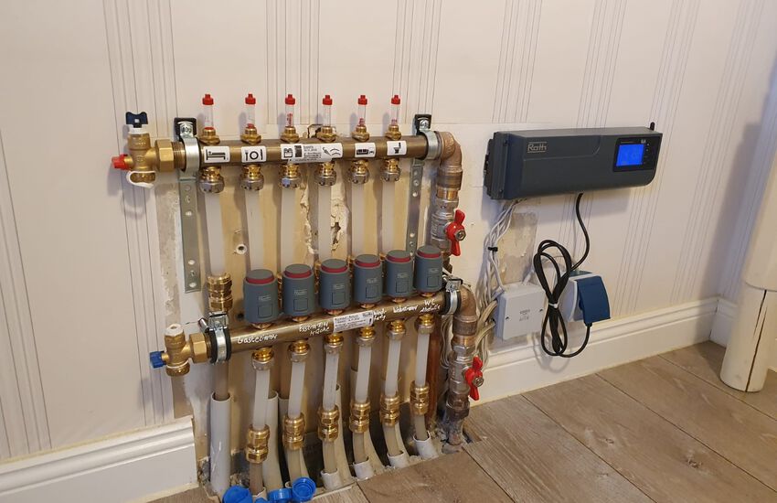 Erneuerung eines Fubodenverteilers mit Stellantrieben und Einzelraumregelung