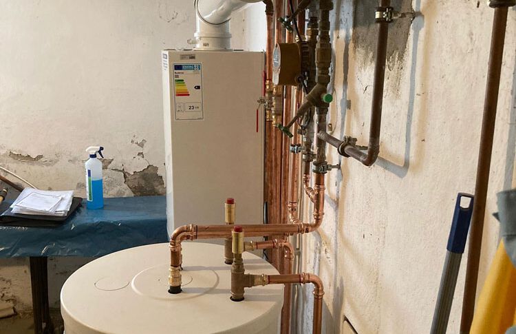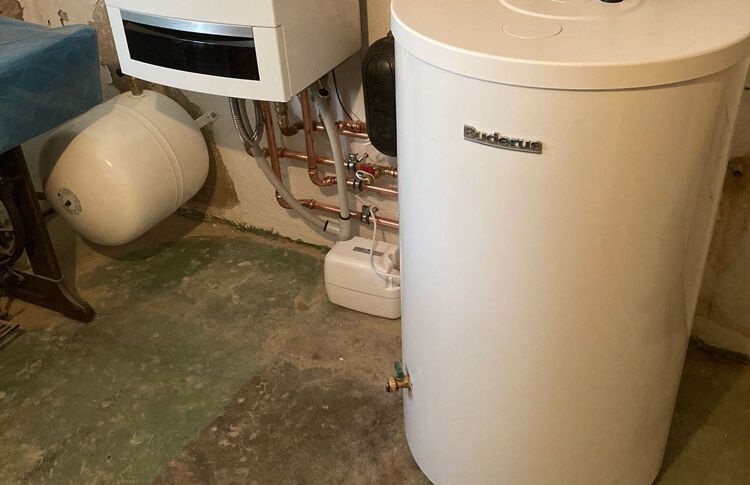 Einbau einer Gasbrennwertanlage mit nebengestellten Warmwasserbereiter, Fabrikat: Buderus