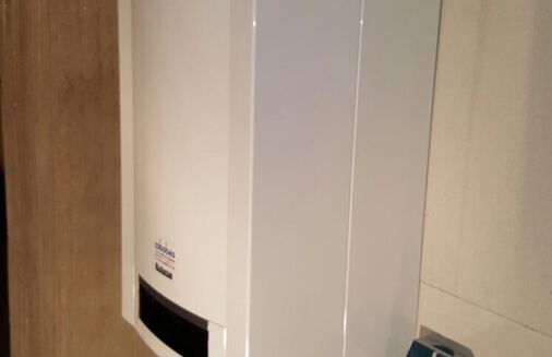 Einbau eines Gasbrennwertgerätes mit integrierter Warmwasserbereitung im Durchlaufprinzip, Fabrikat Buderus