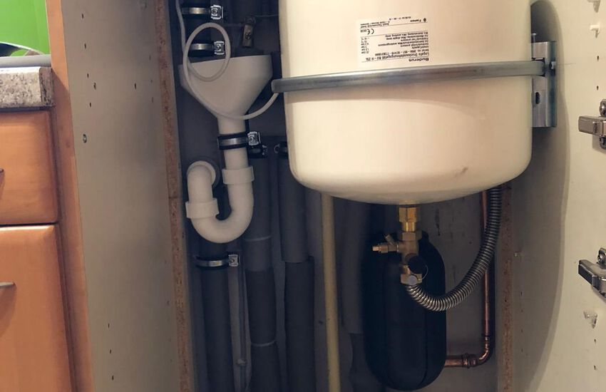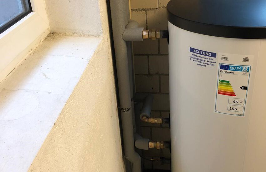 Einbau eines Gasbrennwertgerätes im Erdgeschoss und Warmwasserspeicher im Keller, Fabrikat: Buderus