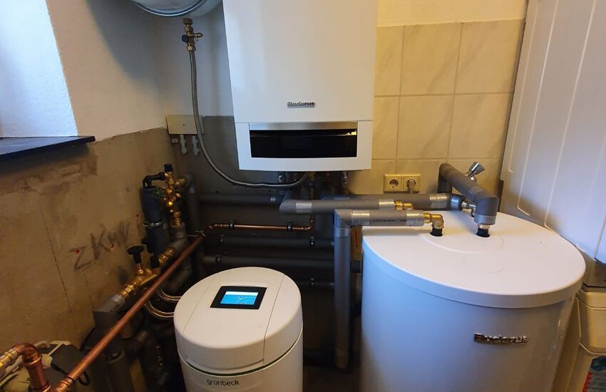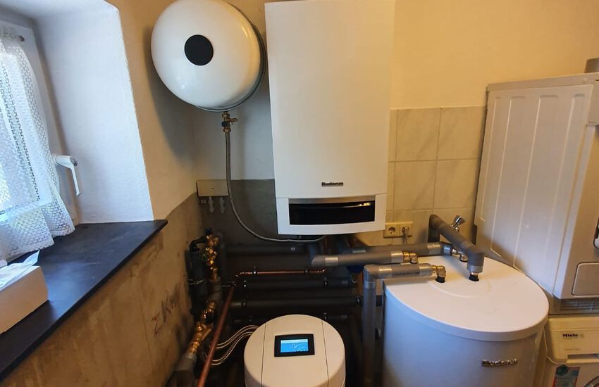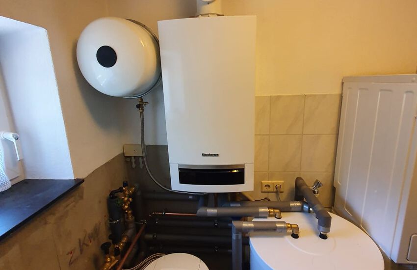 Einbau einer Gasbrennwertanlage mit nebengestellten Warmwasserbereiter, Fabrikat: Buderus