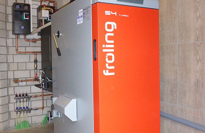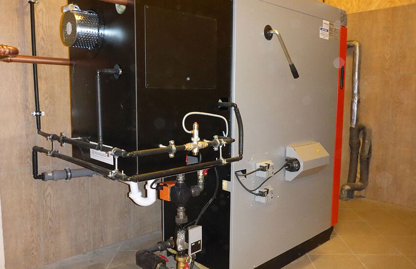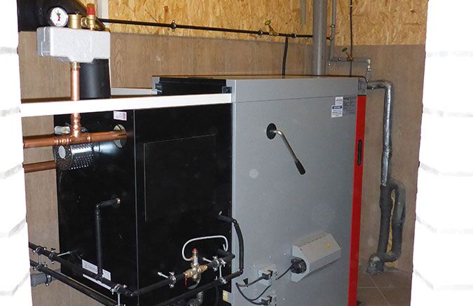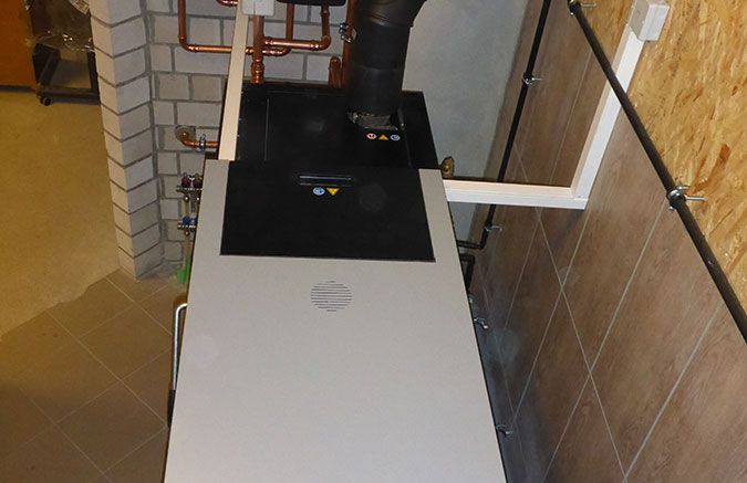 - Einbau eines Scheitholzvergaserkessels mit Heizleistung 28 kW mit Brennwerttauscher und automatischer Zündung
