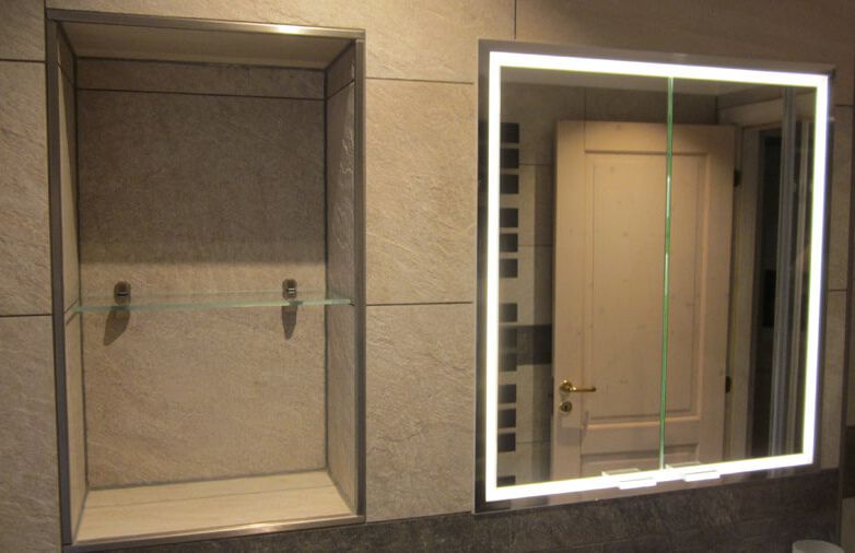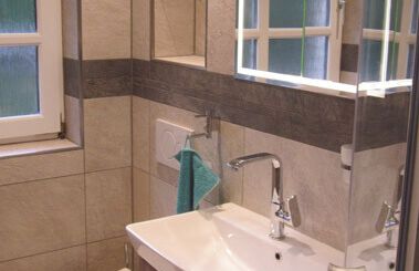 Brausearmatur mit Glasablage und Kopfbrause, Hansgrohe