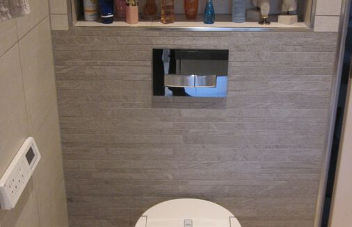 - Doppel-Waschtischanlage spiegelbildlich an eine freistehende Wand montiert