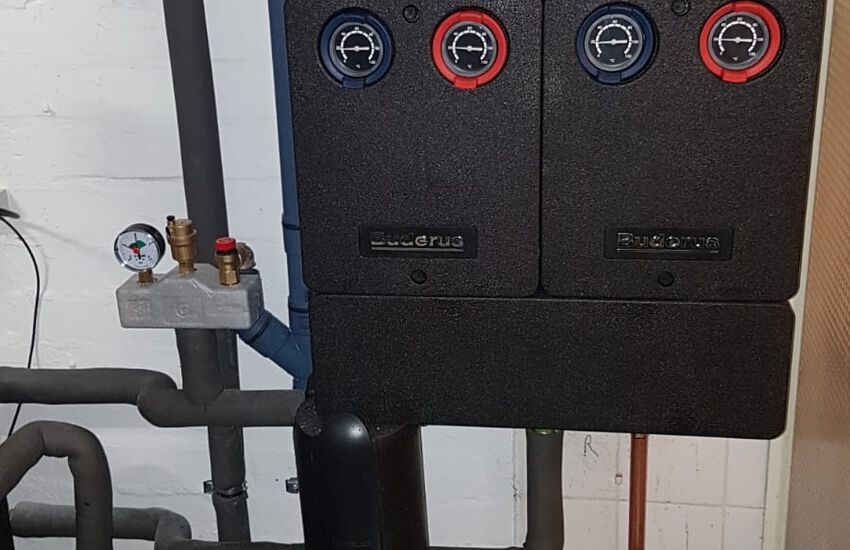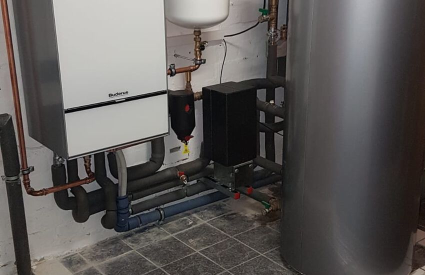 - Einbau eines Gasbrennwertgerätes mit nebengestellten Warmwasserbereiter, Fabrikat: Buderus