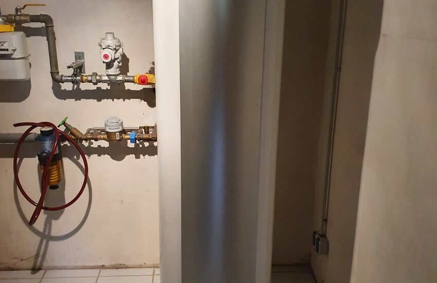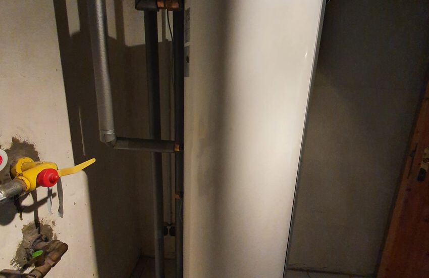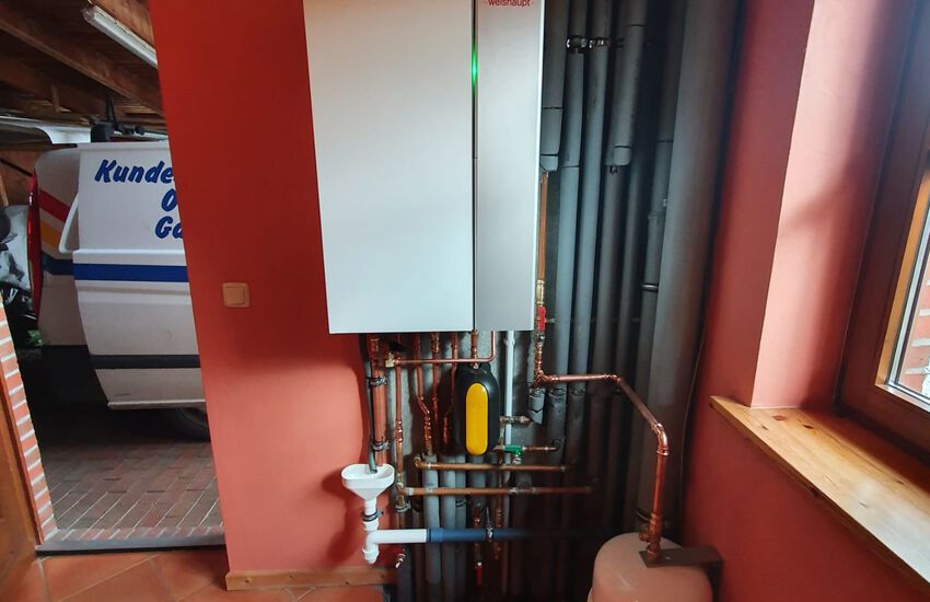 Einbau einer Gasbrennwertanlage mit nebengestellten Warmwasserbereiter, Fabrikat: Weishaupt