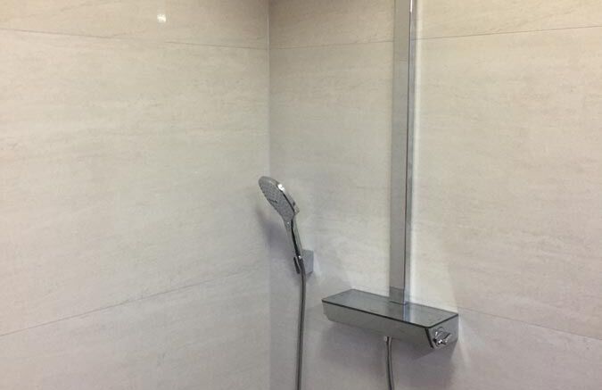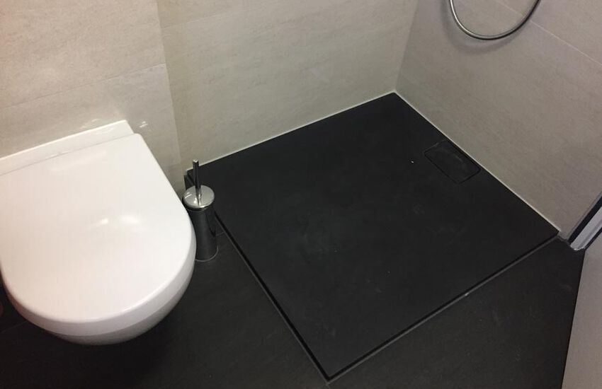 - Einbau einer bodenebenen Duschtasse mit Duschabtrennung, Fabrikat: HSK
