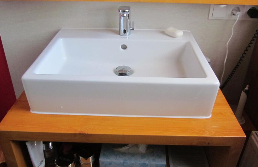 - Einbau eines Aufsatzwaschbeckens, Fabrikat: Villeroy + Boch