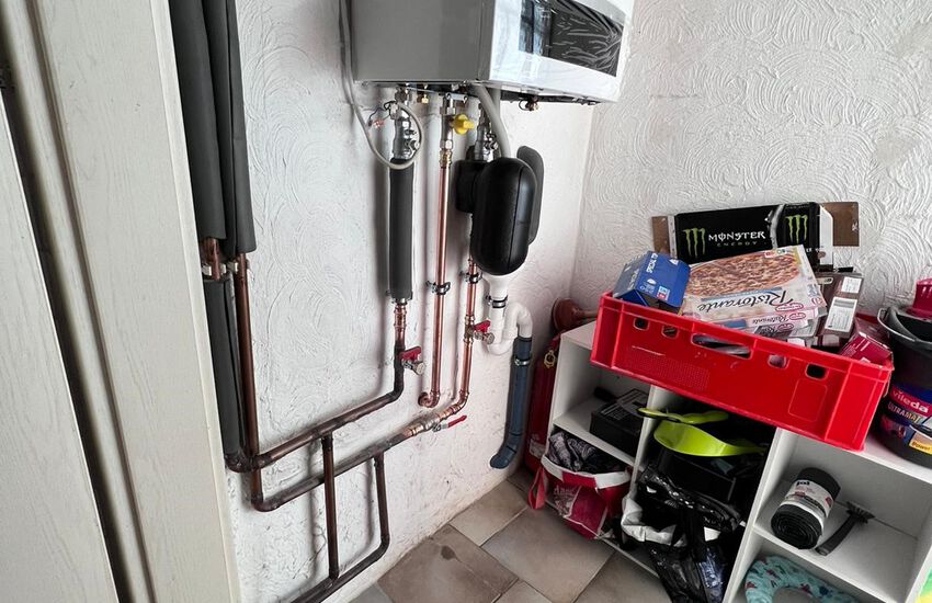 Einbau einer Gasbrennwertanlage mit Warmwasser im Durchlaufprinzip, Fabrikat: Buderus