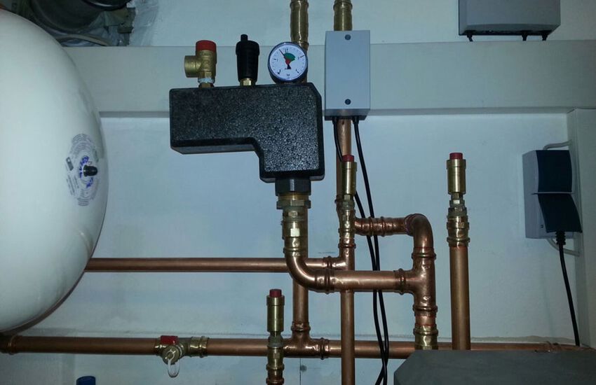 Trennung der Fußbodenheizung durch einen Plattenwärmetauscher zum Schutz des Gasbrennwertgerätes